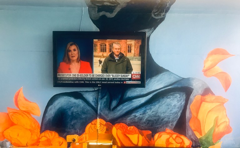 “How does it look?” The artist asks me. “Why don’t you go to the bar and look at it from there?”